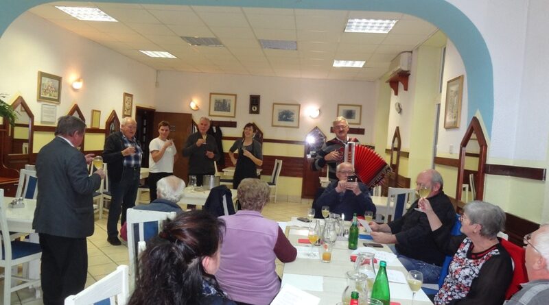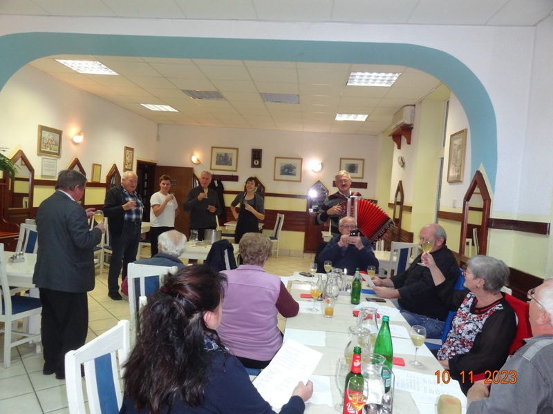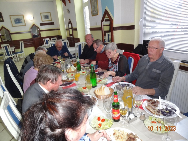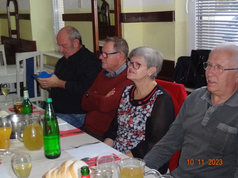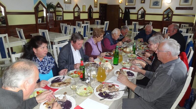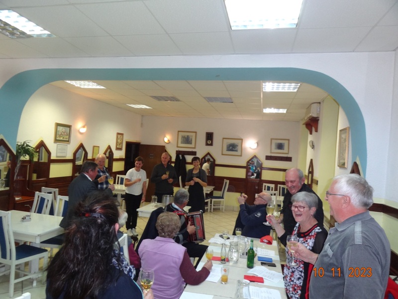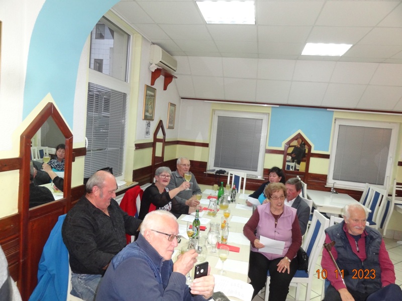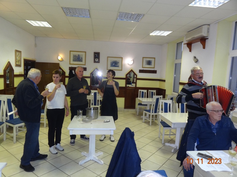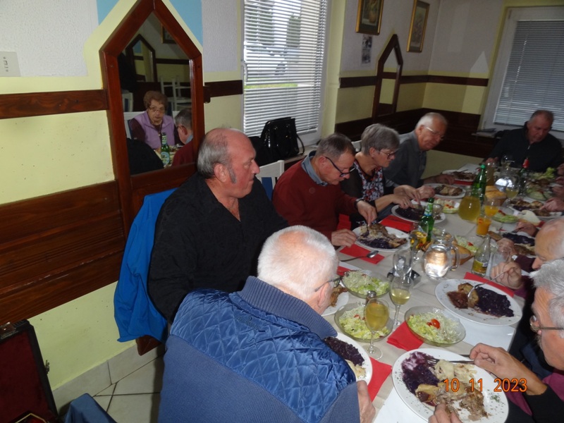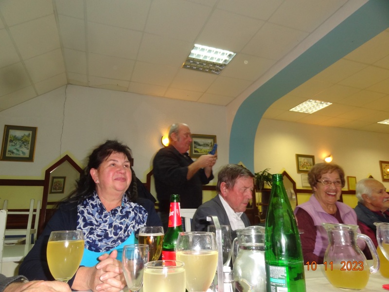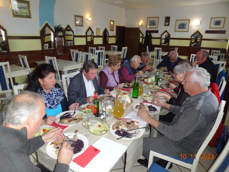 Po uvodnem pozdravu predsednika kluba NOVAK Stanka so nam v Gostilni VILI postregli okusno Martinovo kosilo, katerega smo uspešno zalivali z vinskim moštom vinogradnika LESNIČAR Milka. Po dobri hrani in pijači je za našo boljšo prebavo poskrbel kolega Vlado s svojo harmoniko, nekateri pa so tudi zaplesali.