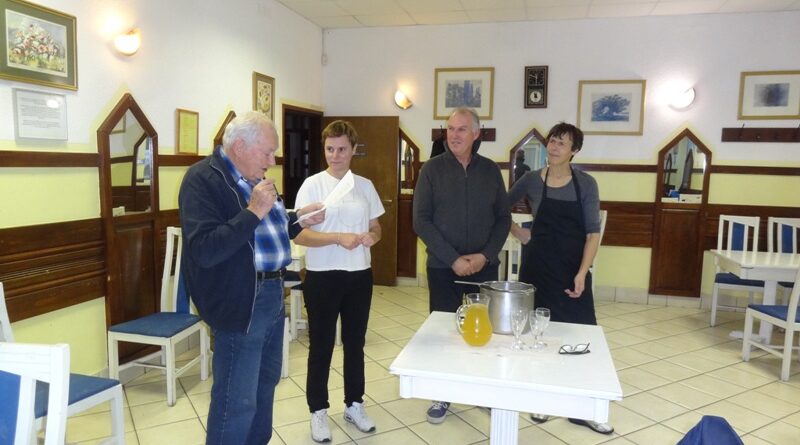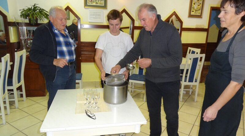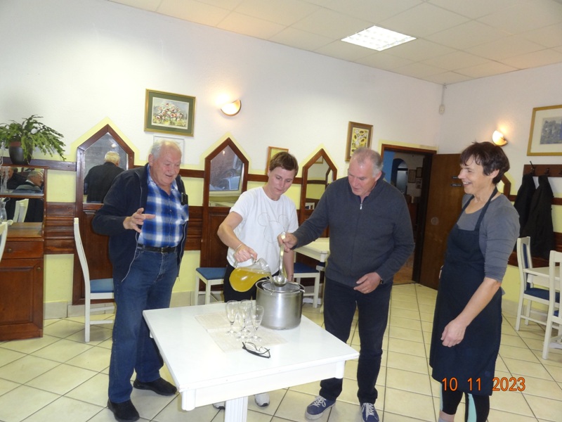 Po kosilu je MARTINČEK Stane prisotne seznanil s pomenom Martinovanja in ob pomoči predsednika kluba NOVAK Stanka, šefice GABI ter asistentke ŠTEFKE, opravil tradicionalni krst vina.