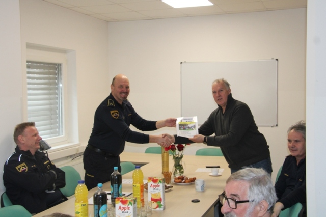 Po uvodnem pozdravu in zahvali za sprejem je predsednik kluba Stanko Novak vodstvu PP izročil simbolno darilo kluba in letni bilten.