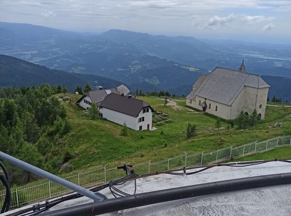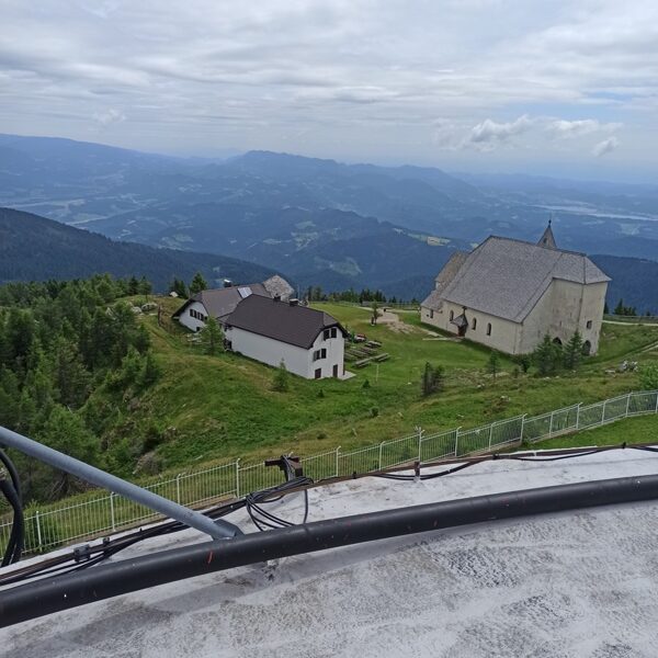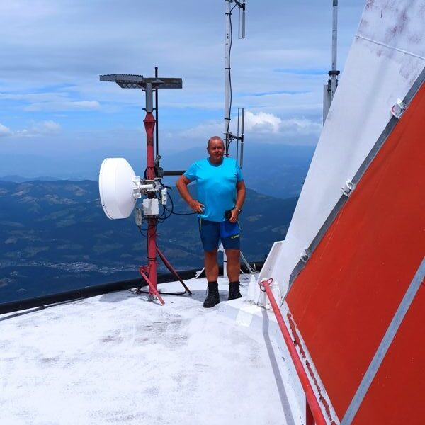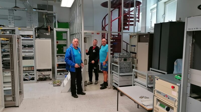 Po okrepčilu na planinski koči smo se odpravili do RTV stolpa na Uršlji gori, kjer nas je prijazno sprejel dežurni operater.