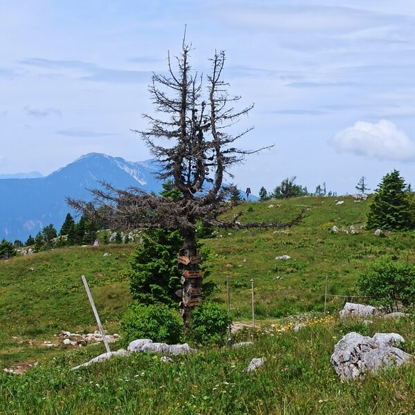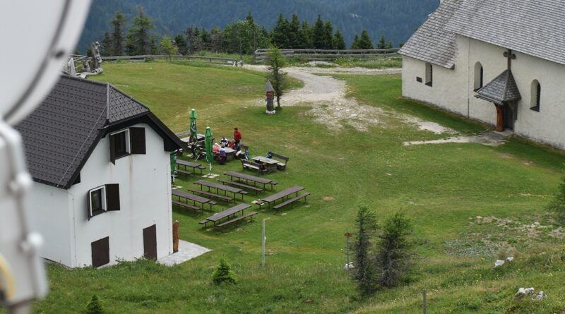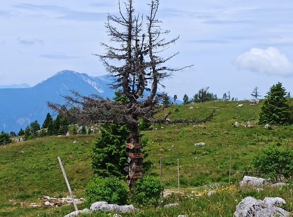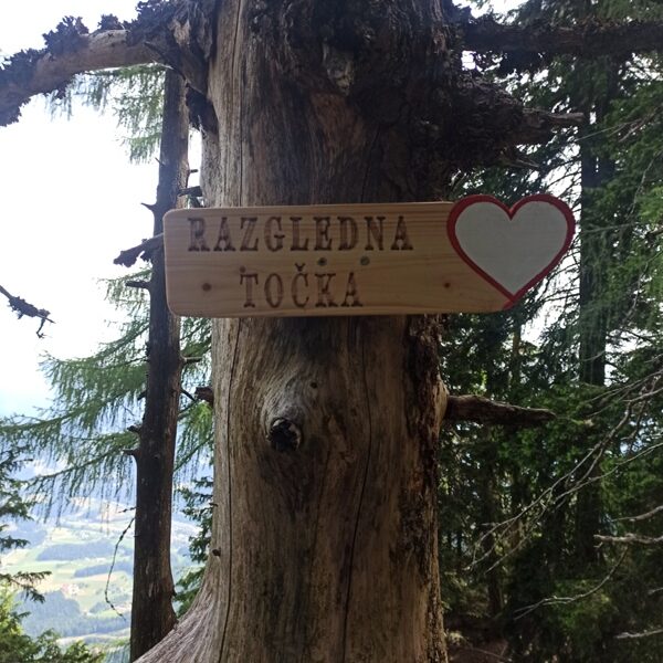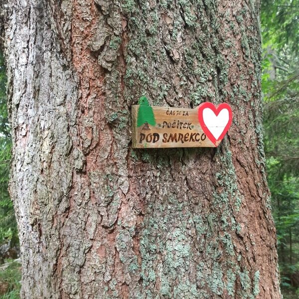 Med prijetnim klepetom smo kaj hitro prišli do naše prve postojanke, klopce in se okrepčali za podvig do vrha. Lansko podrto drevo je odstranjeno, kakor tudi ostala podrta drevesa na poti po lanskem močnem vetru, ko je podrlo veliko dreves.