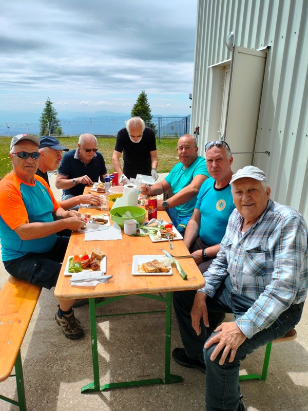 Tudi za letošnji pohod smo organizirali možnost prevoza od rampe pa do vrha in nazaj, kar so izkoristili trije naši člani, ki pa so na vrhu tudi poskrbeli za toplo malico z vsemi priboljški. Okrepčali smo se z okusno pripravljenimi rebrcami, ki jih je spekel naš član Vili in s pijačo, ki jo je prispevala IPA Koroška.